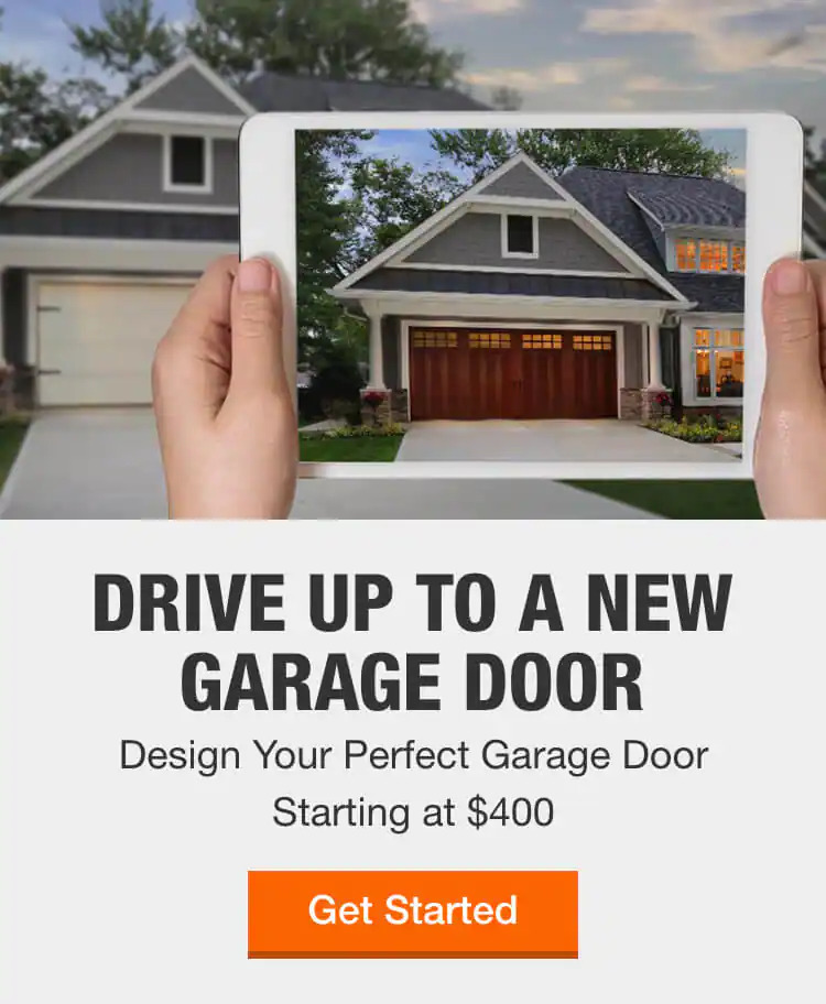 . A new garage door can transform how your home looks and functions. The image highlights exactly that idea—“Drive up to a new garage door” and “Design your perfect garage